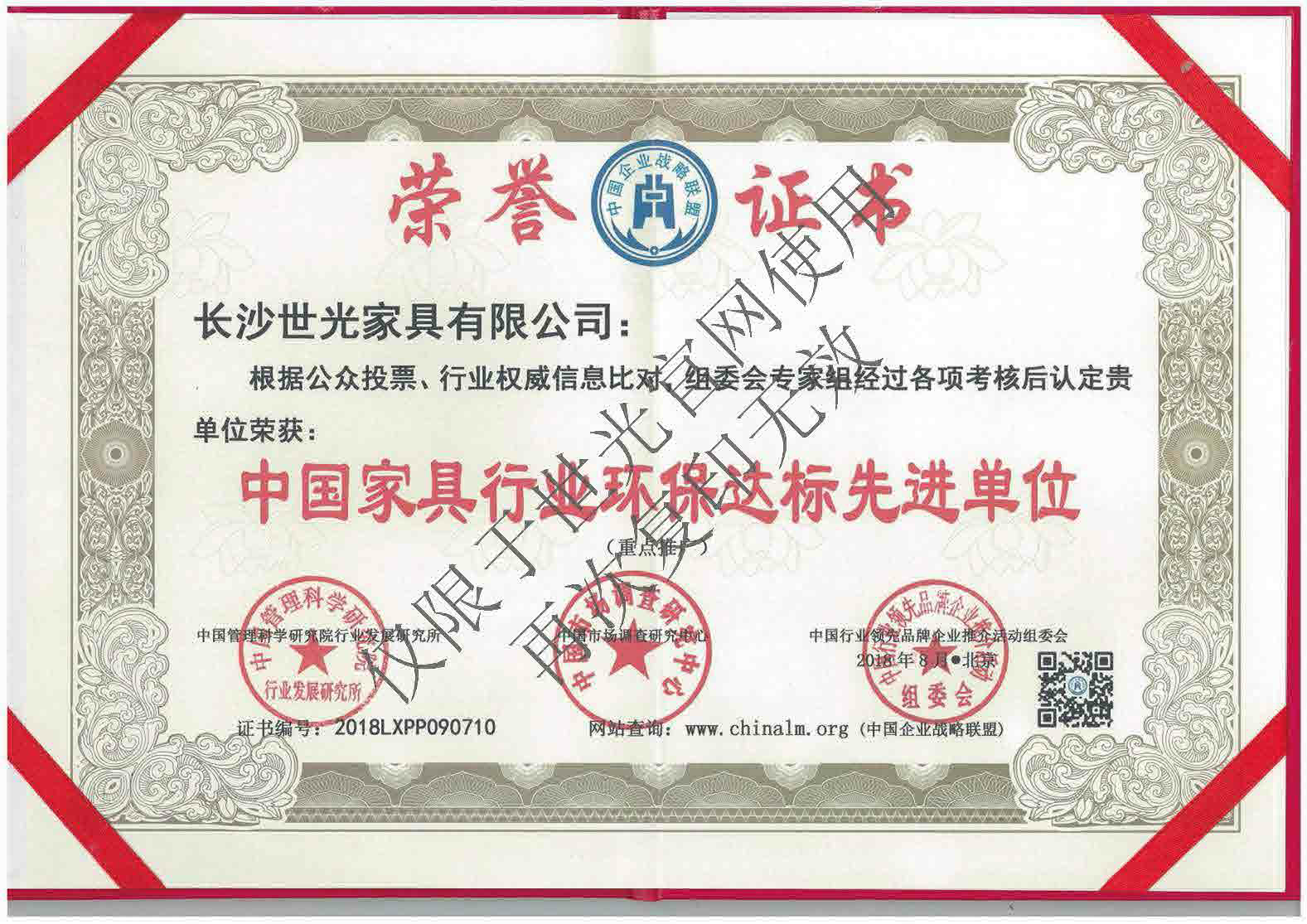 中国家具行业环保达标先进单位