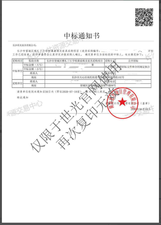 长沙市望城区雅礼丁江学校课桌椅及家具采购项目