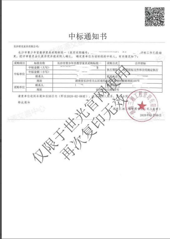 长沙市青少年宫教学家具采购项目
