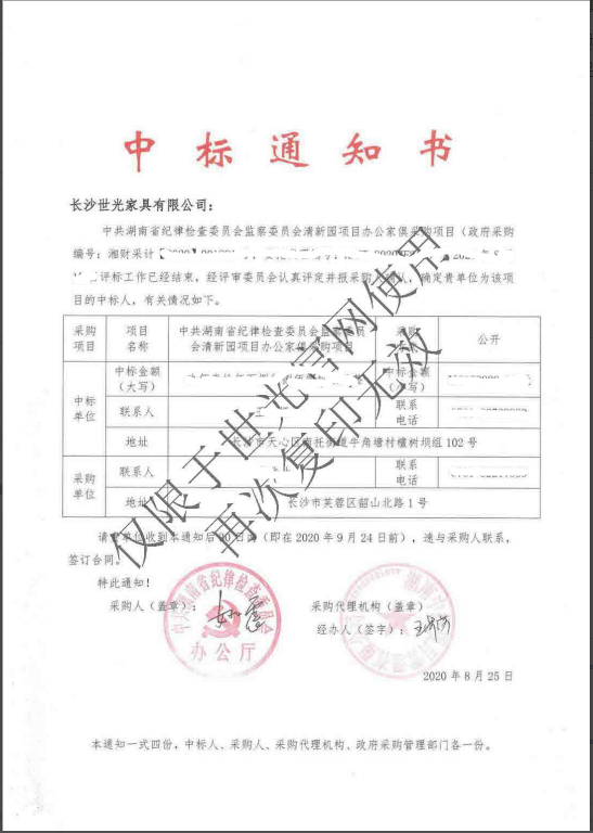 中共湖南省纪律检查委员会监察委员会清新园项目办公家具采购项目